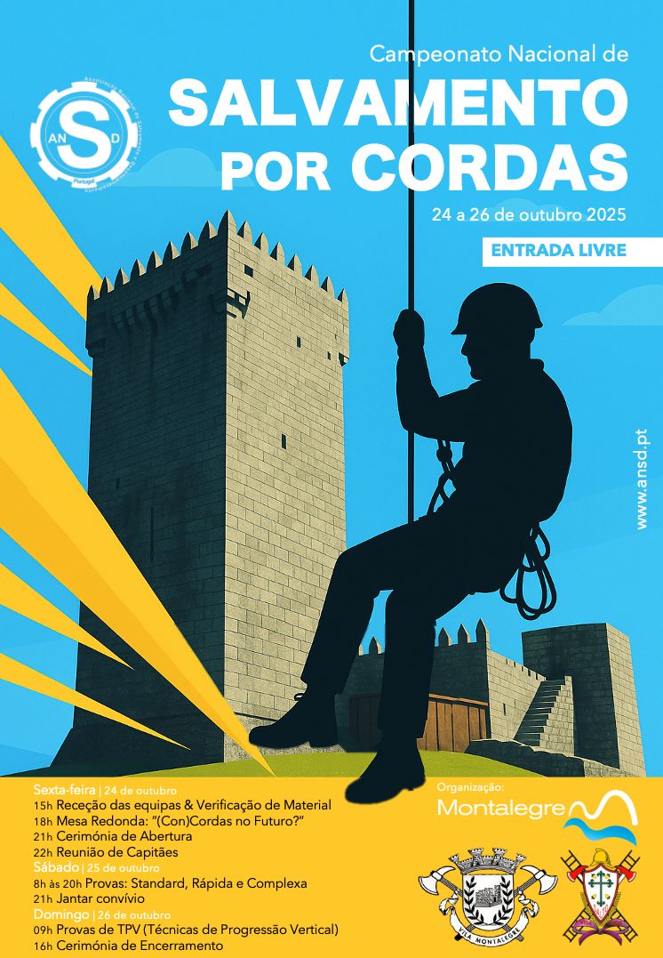A Associação Nacional de Salvamento e Desencarceramento (ANSD), em parceria com o Município de Montalegre, os Bombeiros Voluntários do Salto e os Bombeiros Voluntários de Montalegre, organiza o Campeonato Nacional de Salvamento por Cordas 2025, que decorrerá de 24 a 26 de outubro, no Pavilhão Multiusos e centro histórico de Montalegre.